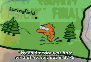 "When America was born on that hot july day in 1776, "the trees in Springfield Forest were tiny saplings, trembling towards the sun. "And as they were nourished by Mother Earth,