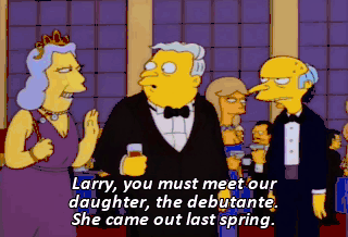 Larry, you must meet our daughter, the debutante. She came out last spring. Whoa! Put her back in! She's not done yet.