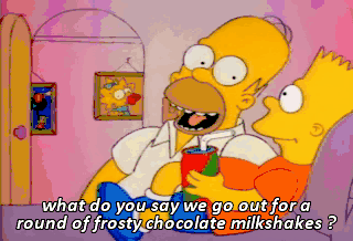 what do you say we go out for a round of frosty chocolate milkshakes ?