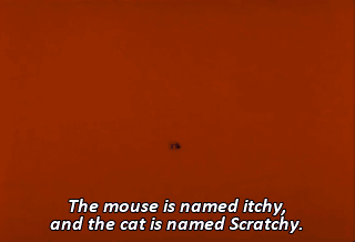 The mouse is named itchy, and the cat is named Scratchy. They hate each other. And they're not shy about expressing it. Good, good, good, good.