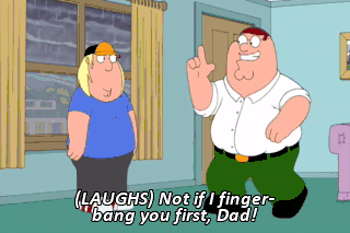 (LAUGHS) Not if I finger-bang you first, Dad!