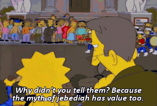 Why didn't you tell them? Because the myth of jebediah has value too. It's brought out the best in everyone in this town. Regardless of who said it, a noble spirit embiggens the smallest man.