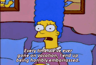 Every time we've ever gone on vacation, I end up being horribly embarrassed.
