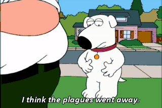 I think the plagues went away. So did the white light. Oh, honey! Thank God! I mean, thank me! Aah! Aah! Kidding! It was A joke! It was a joke!
