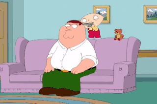 (IN CHILDISH VOICE) "Hey, hey, Stewie,