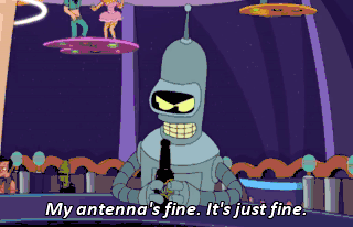 My antenna's fine. It's just fine. Ladies can't get enough Bender. I need to loosen up. Give me a screwdriver. Hello. Who's your hot, dumb friend? Me? Me? Sure, why not. (BOTH GIGGLING)