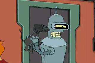 Licking in progress. Licking complete. Robo-Puppy truly is robot's best friend, heh? Ah! There. Perfect. Good news, everyone. The Clone-O-Mat is ready. Yea! Whoo-hoo! Finally!