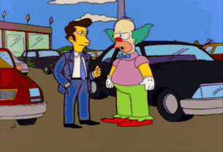 which is me, Krusty! Hey, it's Krusty, all right. Should I shoot him gangland style or execution style? Listen to your heart.