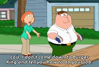 Lois, I don't come down to Burger King and tell you how to do your job.