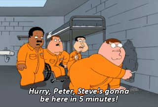 Hurry, Peter, Steve's gonna be here in 5 minutes! Aw, crap! We're dead!