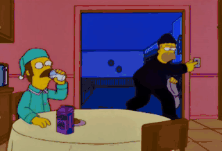 Evenin', neighbor. Low on funds again? Yes, sir. Now, Homer, we can't have you burglarizing us...