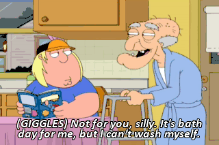 (GIGGLES) Not for you, silly. It's bath day for me, but I can't wash myself. Know anybody with a pair of strong, young hands to help me in and out of the tub? Rats!