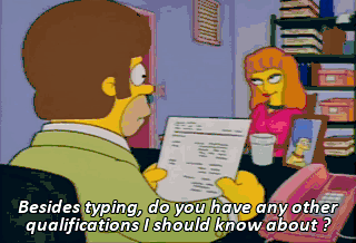 Besides typing, do you have any other qualifications I should know about ? I give great back rubs to harried executives. Here, let me show you. No, no, that'll be fine. Thank you. Good-bye.