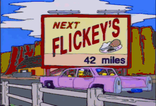 Dad, can we stop at Flickey's? No. Oh, my God. What'll I do? What'll I do?