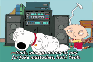 Yeah, you got money to pay for fake mustaches, huh? Yeah. Yeah, how much you pay for that fake mustache? $2.99.