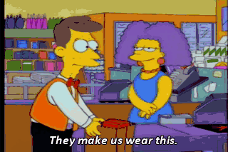 They make us wear this. Shall we continue this conversation over dinner? Uh, I'm not allowed to date customers. It's store policy. No, it isn't. Ow! Shut up, Arnold. No. Go for it, man. "R," "Q," "G."
