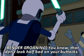 (BENDER GROANING) You know, that don't look half bad on your buttocks. It does sort of class-up the place.