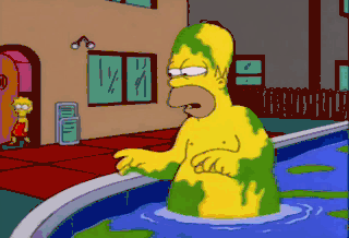 Lisa, the blob has got me! Don't touch me, or it'll get you too! Dad, you have to put chlorine in the water every day to keep it clean. Chlorine, eh?