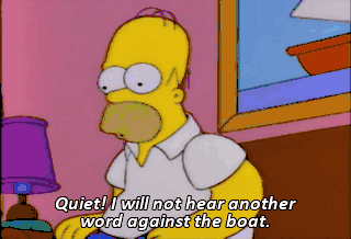 Quiet! I will not hear another word against the boat. - Okay, TV off. It's family time. - Oh, but, Marge!