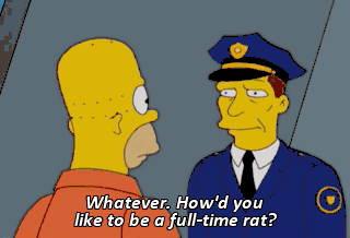 Whatever. How'd you like to be a full-time rat? Really? You mean eat cheese, gnaw through electrical cords, things like that? (MUNCHING LOUDLY)