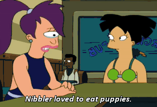 Nibbler loved to eat puppies. What's your problem? I miss Nibbler. You do? Hell, no!