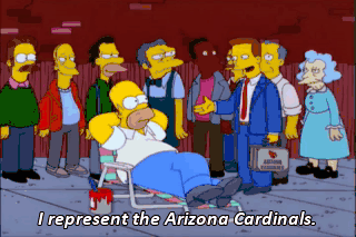 I represent the Arizona Cardinals. Keep walking. Good decision there, Homer. You showed a lot of poise.