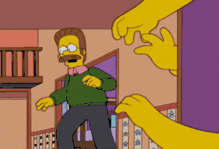 What are you doing here? Stealing doormats. Dad's gonna catch Flanders, just like the end of Mom's book! Oh, yeah. How does that go again? Ugh! Didn't you read Mom's book?