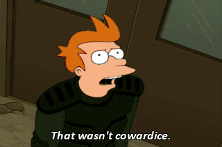 That wasn't cowardice. I'm de-promoting you, soldier.