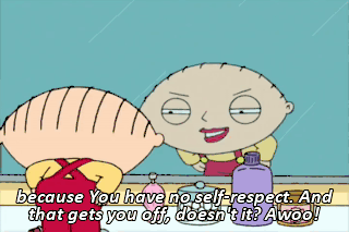 because You have no self-respect. And that gets you off, doesn't it? Awoo!