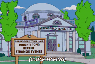 (CLOCK TICKING) (CLICK) (CLICK) (CLICK) People, Springfield is in crisis. Fingers have been shoved up noses, pants have been pulled down,