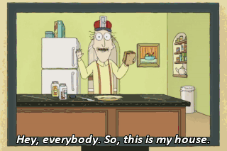 Hey, everybody. So, this is my house. Just made a sandwich -- peanut butter and Jelly. Still here, still selling fake doors. M O RTY: What?