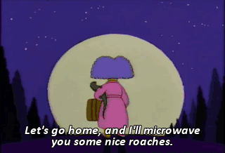 Let's go home, and I'll microwave you some nice roaches.