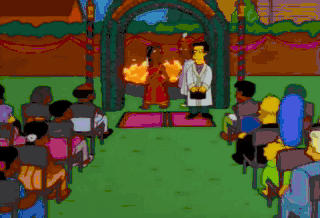 And now, ladies and gentlemen, let me be the first to present to you... Mr. and Mrs. Apu Nahasapeemapetilon. Aw, geez!