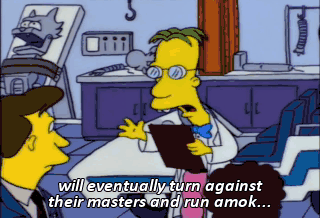 will eventually turn against their masters and run amok...