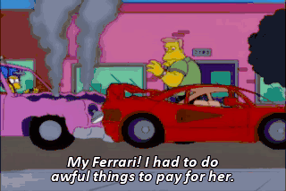 My Ferrari! I had to do awful things to pay for her. Homer, help! Marge! Over here!