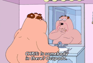 CHRIS: Is somebody in there? Ocupado. Filthy whore. You're somebody's father, you filthy whore.