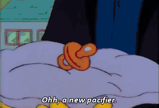 Ohh, a new pacifier. D'oh! No more fooling around. Paw, this is Bart.