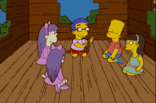 (MUMBLING) Homer drunk? But how? Hmm. Round and round the bottle twirls, I hope it stops on one of the girls.