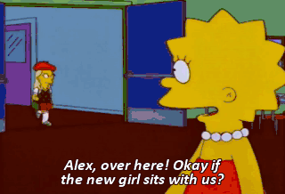 Alex, over here! Okay if the new girl sits with us? - Oh! - Okay, I guess. She's a little weird. But let's give her a chance. Guys, this is Alex.