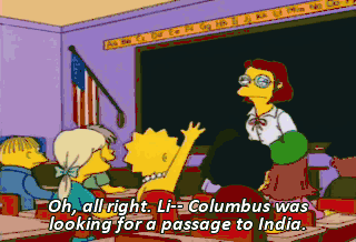 Oh, all right. Li-- Columbus was looking for a passage to India.