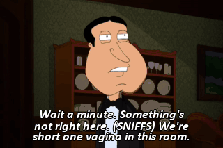 Wait a minute. Something's not right here. (SNIFFS) We're short one vagina in this room. Oh, my God! Priscilla's gone!