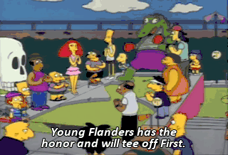 Young Flanders has the honor and will tee off First. It's got a chance. Yes, sir ! Oh, man. Tree falling in the woods. Tree falling in the woods.