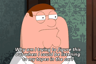 Why am I trying to figure this out when I could be listening to my tapes in the car? Bye. Shall we?