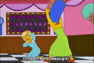 Drop the cone, sugar! Whoa. Whoopsie. Take her away, boys. I thought you said the law was powerless. Yeah, powerless to help you, not punish you.