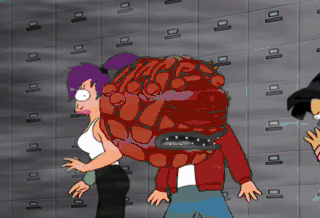 Please don't tell my supervisor I was sleeping. This is it. We'll just run in, grab Bender's disk, and run out. Got it? Mm-hmm. Wow!