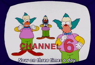 Now on three times a day. Because at Channel 6, we got nothin' else. Hey, Krusty should run for Congress.