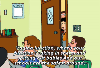 Vagina junction, what's your function? Taking in sperm and spitting out babies And our schools are the safest around,