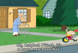 Oh, OshKosh B'Gosh, it's a brand new paperboy.
