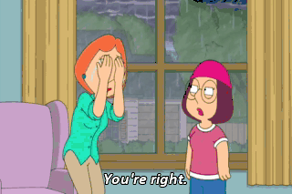 You're right. You're right. I'm a terrible mother. I'm so sorry. I'm so, so sorry, Meg.