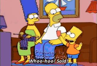 Whoo-hoo! Sold! Those aren't tickets to the game, Homer. What do you mean? It says right here: "Free wig with every purchase of large wig. Downtown Wig Center." Why, you little-- Hmm. Free wig.